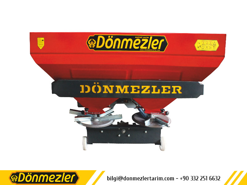 Santrifüjlü gübre dağıtma makinesi traktör üç nokta askı sistemi ile traktöre bağlanır. Makine şaft vasıtası ile traktör kuyruk milinden hareketle çalışır. Hidrolik ayar sistemi vasıtası ile isteğe göre gübreleme miktar ayarı traktörden yapılabilir. Özel dizayn edilmiş çıkış ağızları sayesinde her iki tarafa eşit miktarda gübreleme sağlanır. Depo kapasitesi 600-800-1000 lt olarak üretilmektedir.