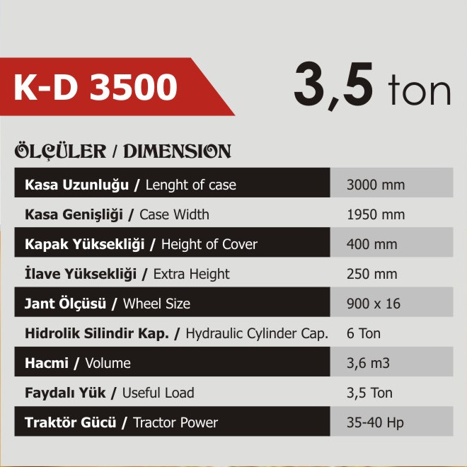 KARABULUT TARIM KD3500 3.5 TONLUK TARIM RÖMORKU