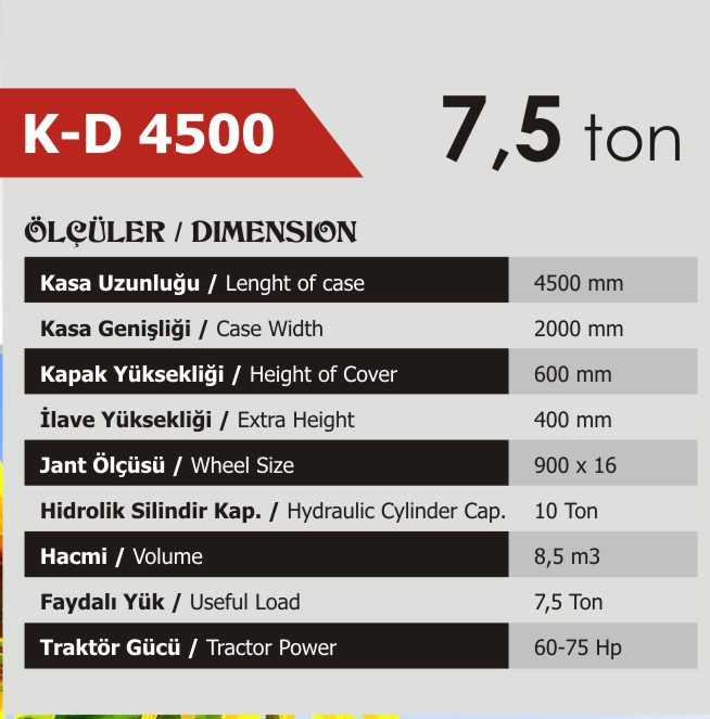 KARABULUT TARIM KD4500 7.5 TONLUK TARIM RÖMORKU