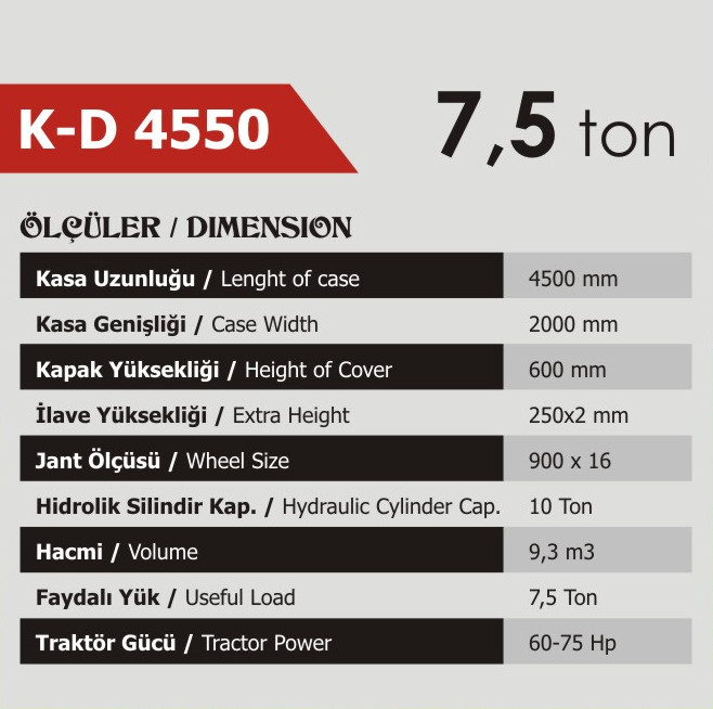 KARABULUT TARIM KD4550 7.5 TONLUK TARIM RÖMORKU