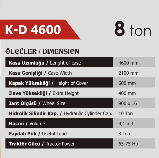 KARABULUT TARIM KD4600 8 TONLUK TARIM RÖMORKU