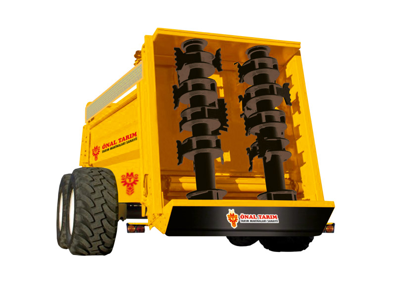 ÖNAL TARIM Katı gübre serpme makinesi suyu giderilmiş gübrenin zirai üretimde kullanılabilmesi için dizayn edilmiş bir makinedir. Modeline Göre yatay veya dikey dağıtıcı sistemi ile gübrenin parçalanmasını ve toprak üzerine eşit miktarda dağıtılmasını sağlamaktadır.